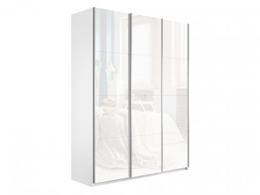 Шкаф-купе 3-х дверный Прайм Белое стекло/Белое стекло/Белое стекло 1800 мм Белый снег