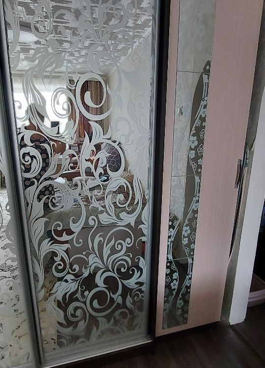 Материал фасада: ЛДСП, Зеркало с пескоструйной обработкой 4 мм