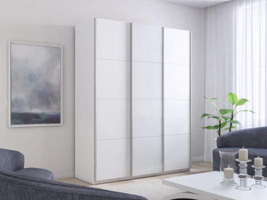 Шкаф-купе 3-х дверный Прайм ДСП/Белое стекло/ДСП (Е1)