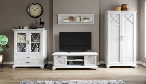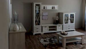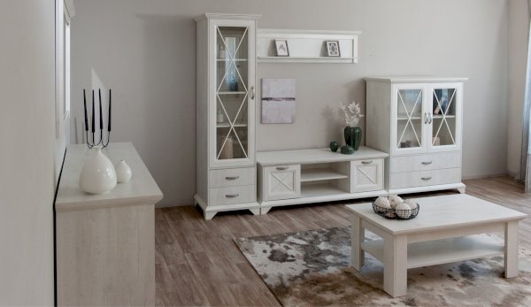 Вместительный комод Лорена в стиле неоклассика создает уютную атмосферу в интерьере гостиной или спальни. Белые фасады с фактурой и рисунком натурального дерева наполняют комнату светом, делают ее просторнее. Металлические ручки цвета состаренного серебра придают изысканность, а фигурные ножки и декоративный карниз подчеркивают стилистику коллекции. За прозрачными витринами будут идеально смотреться красивая посуда, антикварный декор и сувениры. В выдвижных ящиках на телескопических направляющих удобно хранить текстиль, посуду. Выполнен из экологичных материалов.