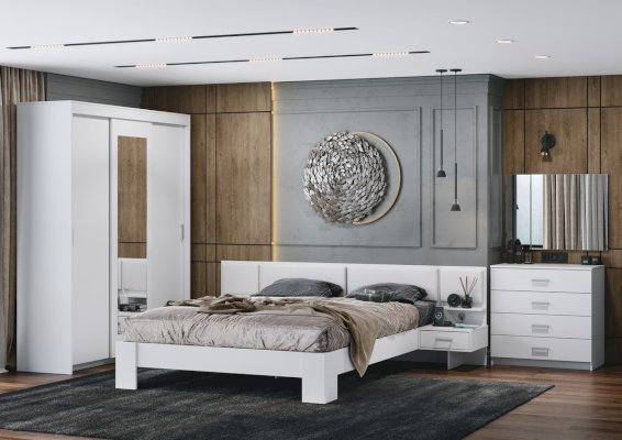 • Приятное для глаз цветовое решение Белый гладкий визуально делает спальню немного просторнее