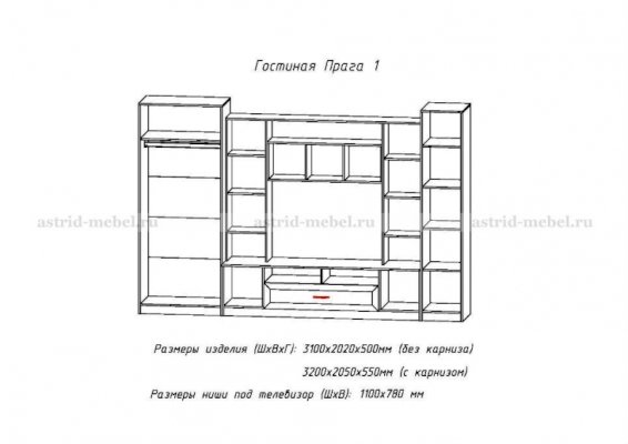 ТВ-секция Прага-3 + Двухстворчатый шкаф Прага-1 + Пенал Прага-1 Корпус: ЛДСП