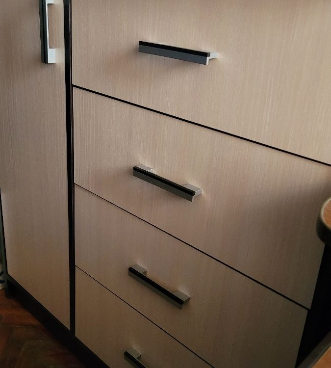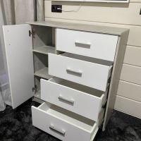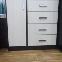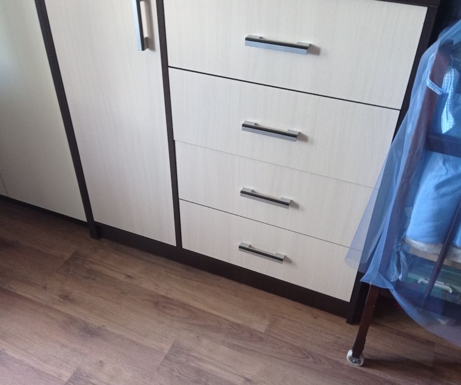 Выбирали комод по фото. Даже не ожидали, что комод окажется настолько качественным и красивым! Все детали без дефектов и сколов, что очень порадовало! Достаточно крепкая фурнитура, крепкие салазки. Приятно, что продавец очень внимательный и положил даже наклейки для того, чтобы закрыть место крепления! Однозначно рекомендую к покупке! Теперь хотим угловой шкаф и тумбу из этой же серии мебели, чтобы собрать комплект.