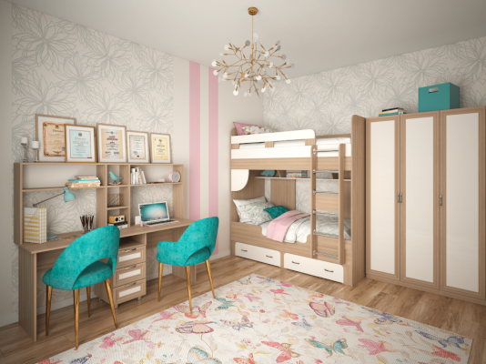 • Стол рассчитан на два рабочих места и предназначен для обстановки комнаты двоих детей.